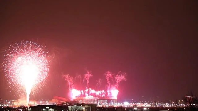 The video component of the project overlays the audio from the television broadcast over the 3.5 hrs of footage filmed over the complete duration of the game. The photographs document nine specific moments in the sky as it changes over the course of the game. Capturing the spectacle and pageantry of the Blackhawk helicopter flyover and fireworks, these images taking place over an American skyline similarly echo the war zones of current American military operations taking place overseas.